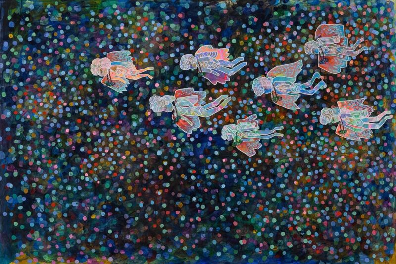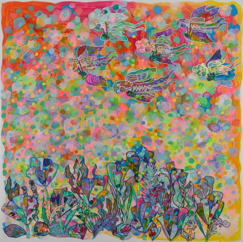 Acrylic paint & collage on canvas, 110 x 1520 mm